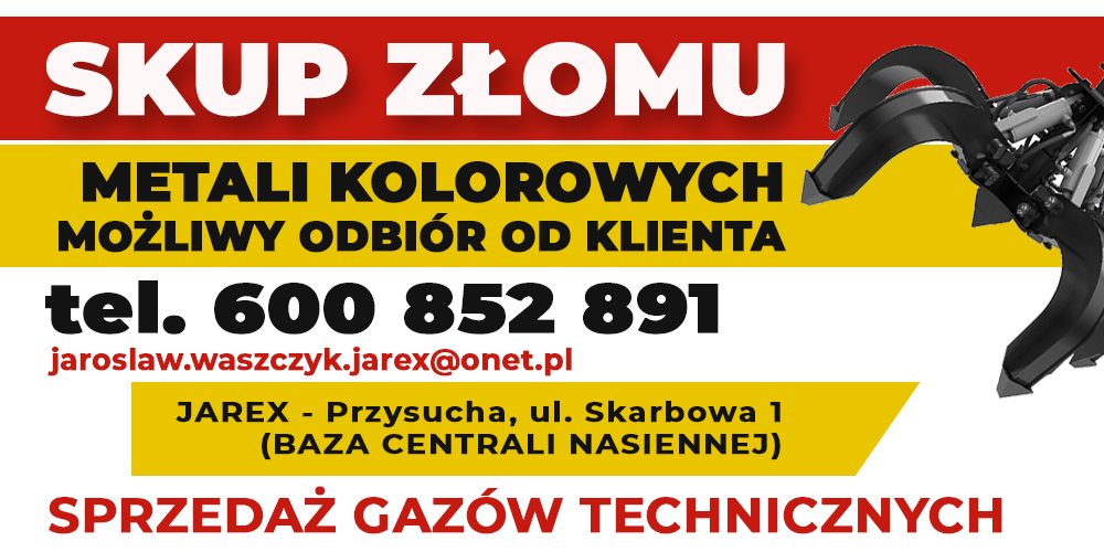 Wystaw opinię firmie JAREX-METAL Przysucha Skup Złomu i Metali Kolorowych / Skup Gazów Technicznych / Skup Katalizatorów