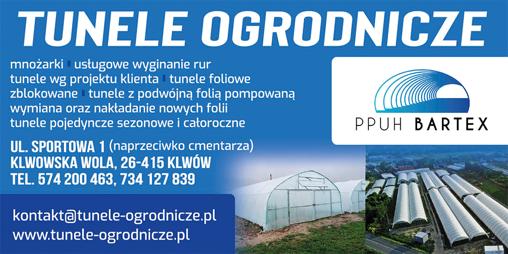 Działalność naszej firmy skoncentrowana jest na produkcji profesjonalnych tuneli ogrodniczych przeznaczonych do uprawy owoców i warzyw, dla ogrodnictwa oraz szkółkarstwa. Wykonujemy tunele ogrodnicze od 3m szerokości z rur ocynkowanych o podwyższonej wytrzymałości. Posiadamy własny transport i działamy na terenie całego kraju. W produkowanych przez nas tunelach możemy zastosować różne rodzaje wietrzenia, od najprostszych drzwi jedno i dwuskrzydłowych na zawiasach, poprzez drzwi przesuwne wykonane z profili, po wietrzniki rolowane zarówno na ścianach szczytowych, jak i na ścianach bocznych. Na tunele możemy założyć pojedynczą folię lub podwójną folię pompowaną. Serdecznie zapraszamy do zapoznania się z naszą ofertą, w razie pytań prosimy o kontakt.