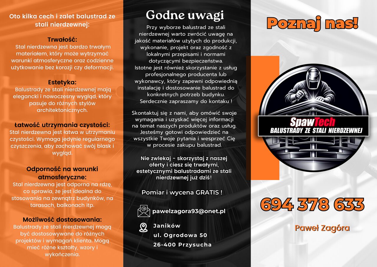 Wystaw opinię firmie SPAWTECH – Balustrady ze stali nierdzewnej – Przysucha Janików